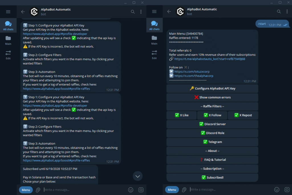 AlphaBot Automatic is our specialized Telegram bot designed to automate the entire whitelist acquisition process. Instead of spending hours manually hunting for spots, AlphaBot does the heavy lifting for you.